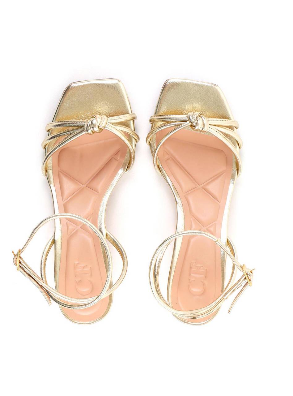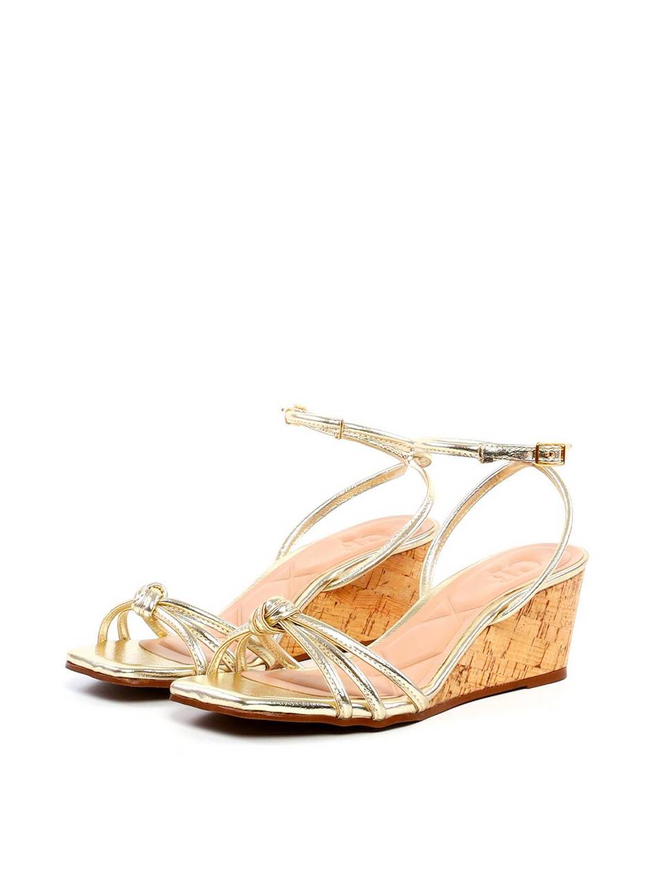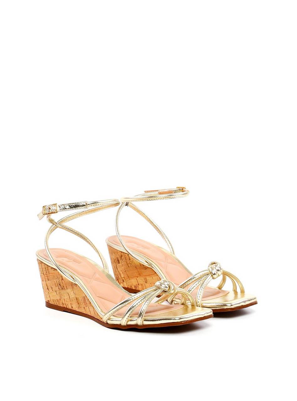 Sandália Anabela em Cortiça com Tiras e Nó - Ouro SDI-11952 - AU