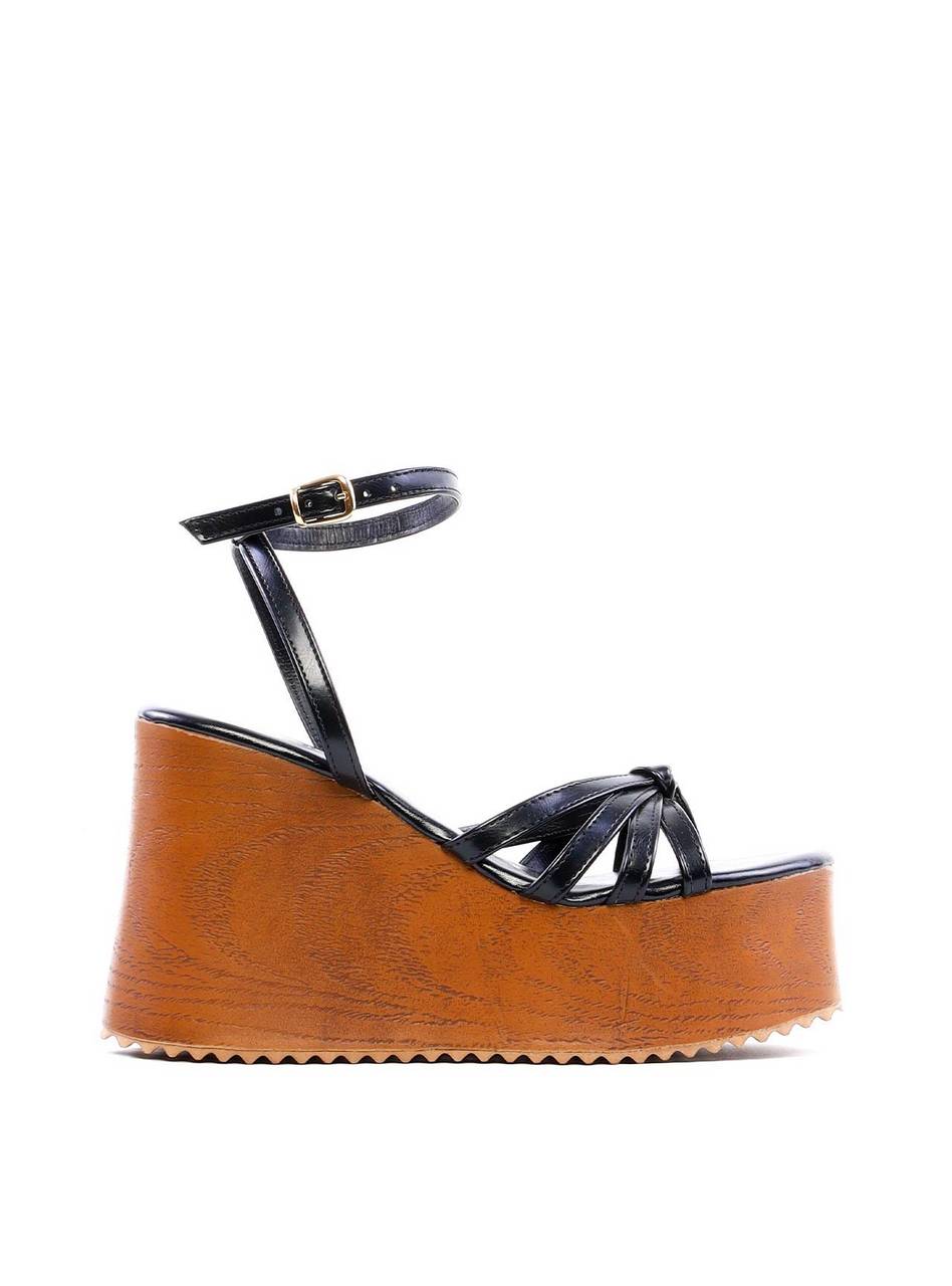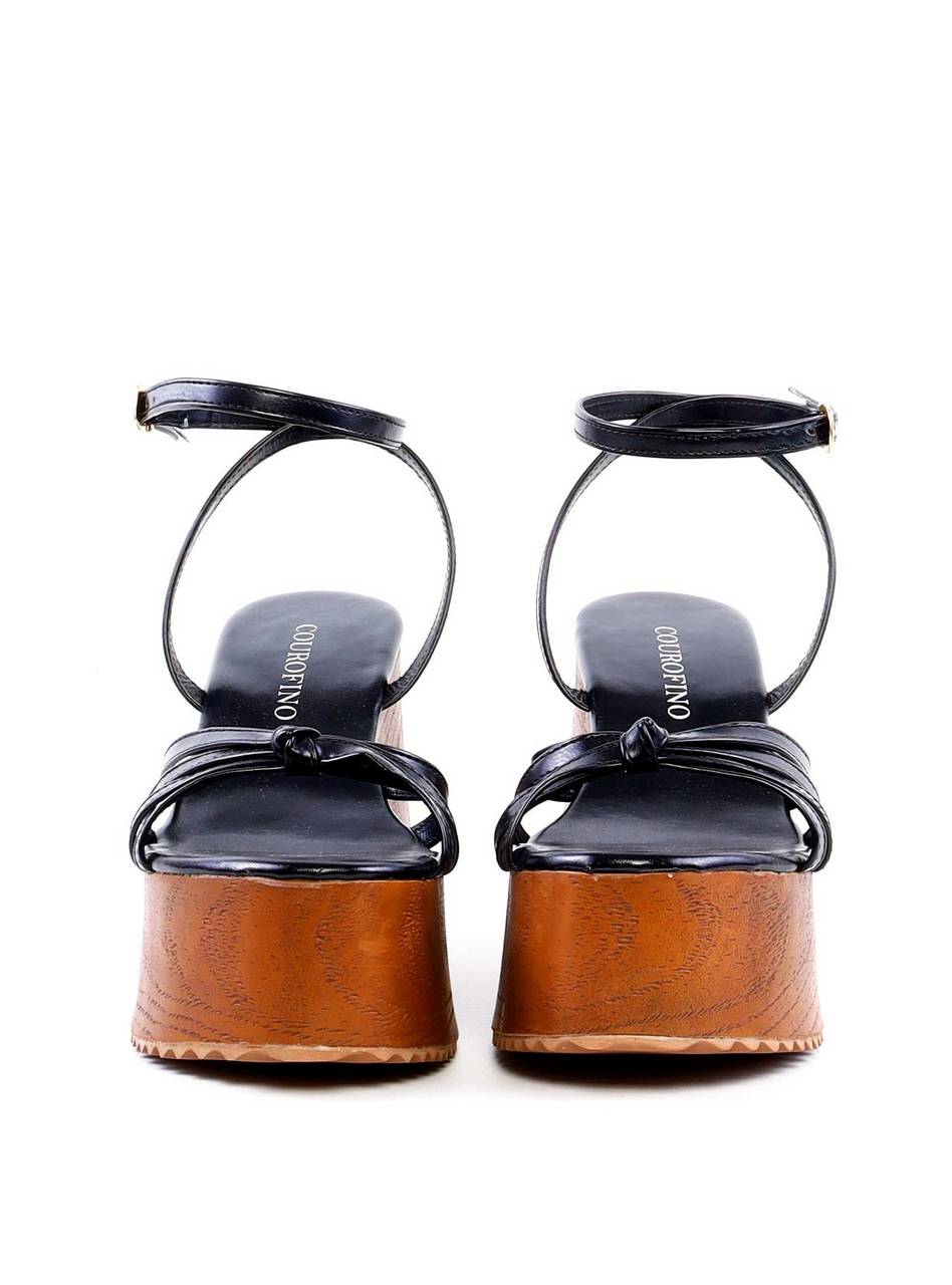 Sandália Plataforma com Tiras e Nó - Preta SDI-11951 - PR