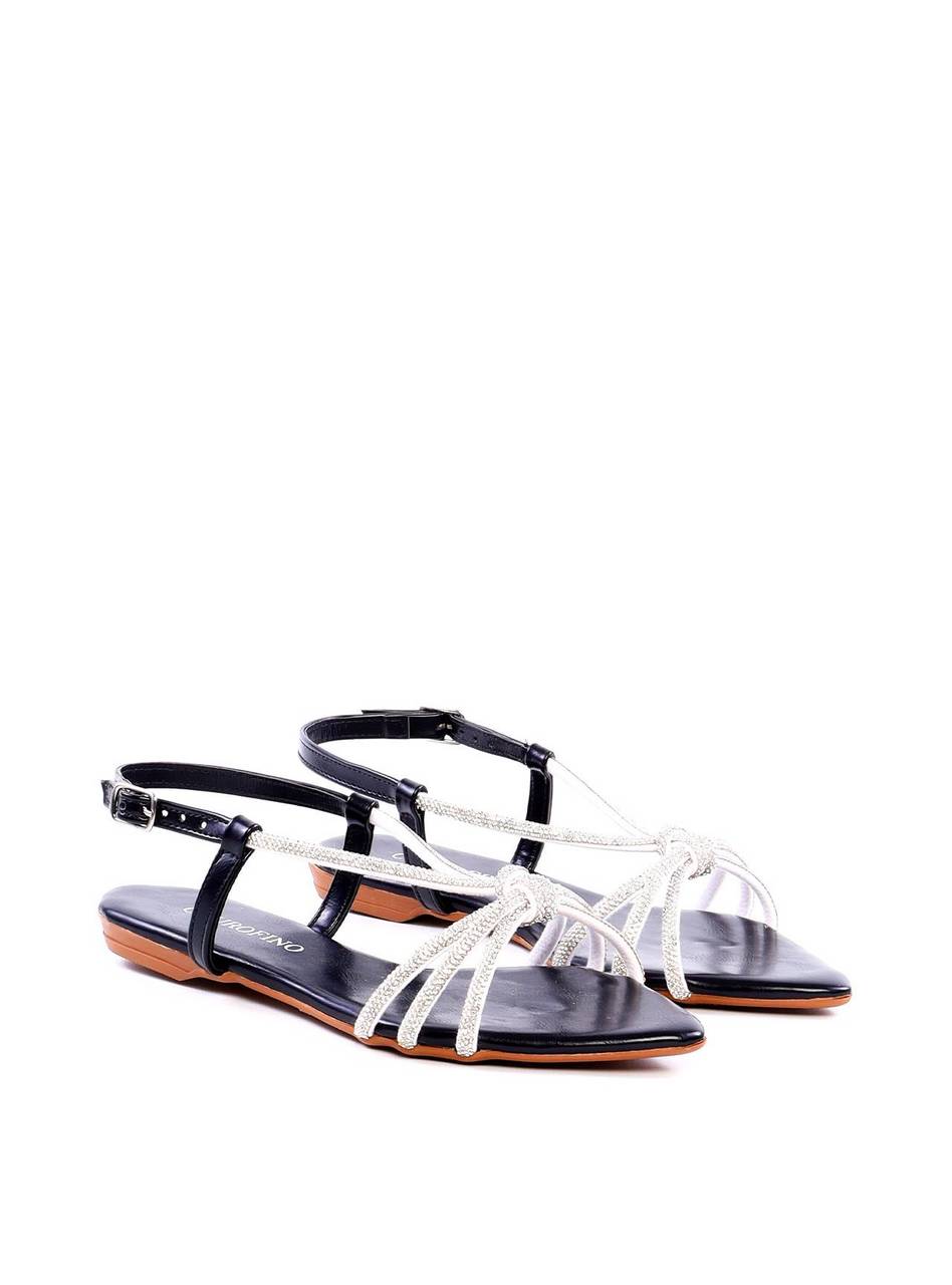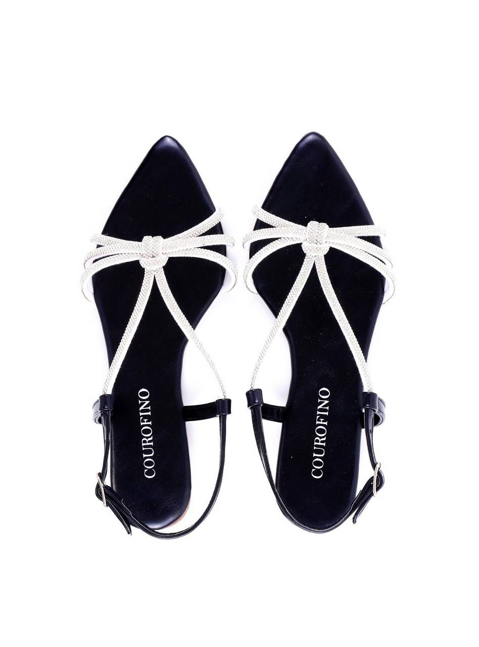 Rasteira Bico Fino com Tira de Strass - Preta SDI-11937 - PR