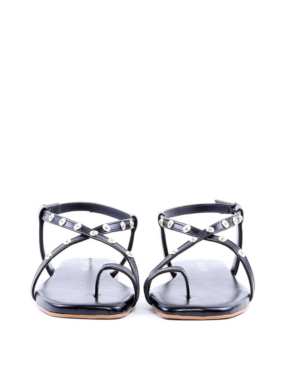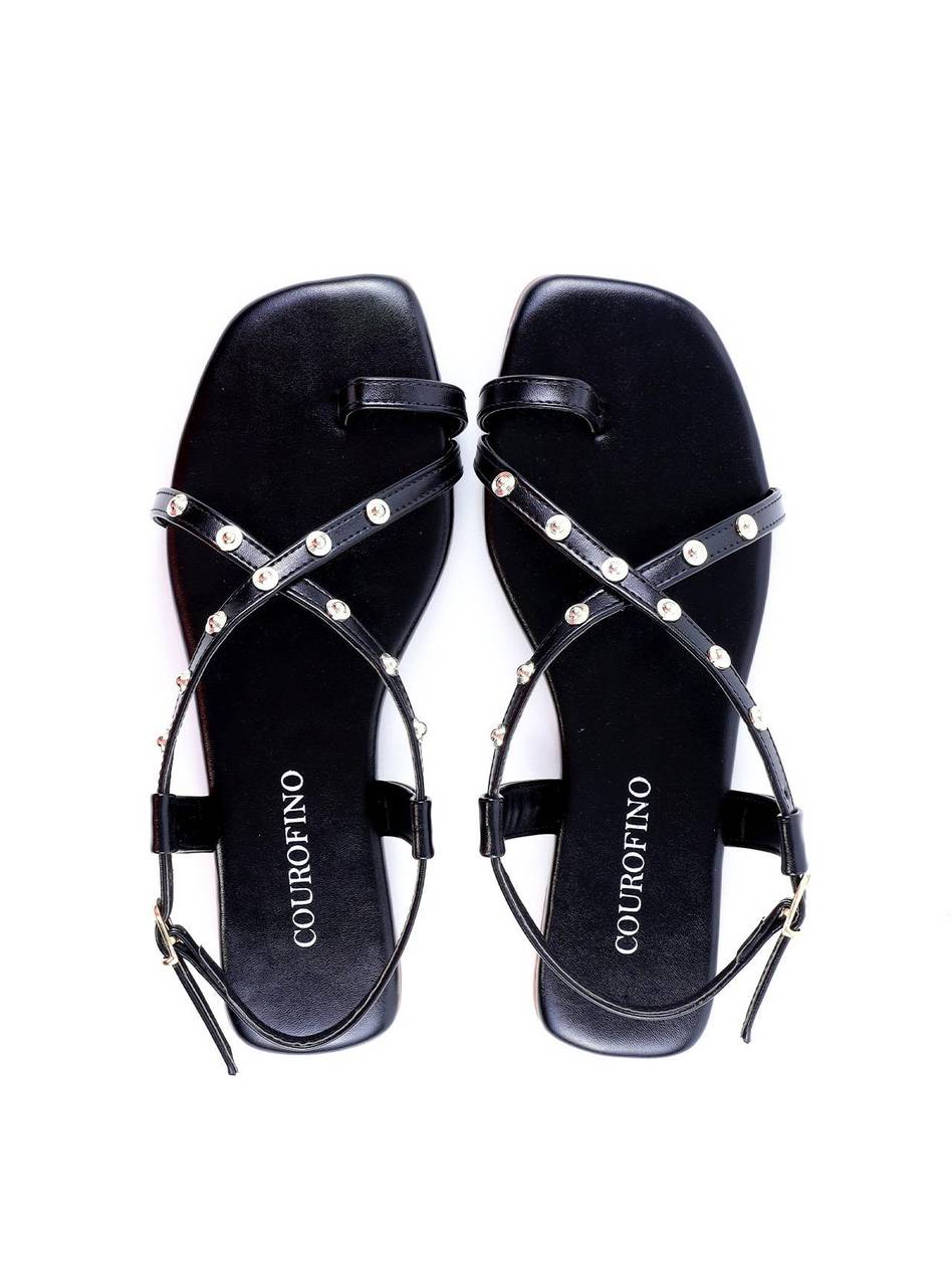 Rasteira com Dedeira e Tiras Cruzadas - Preta SDI-11903 - PR