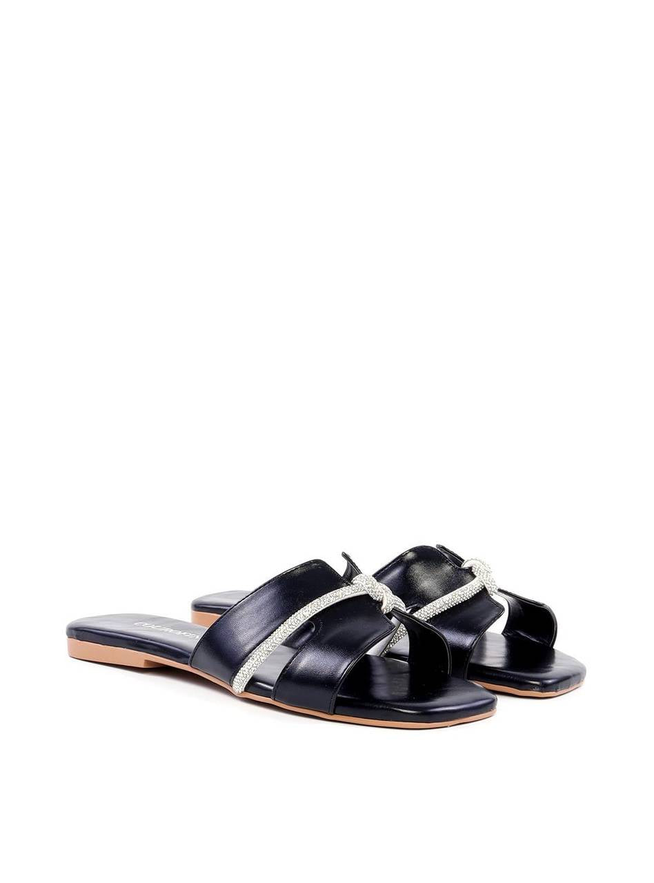 Rasteira com Recorte em H e Strass - Preta SDI-11874 - PR