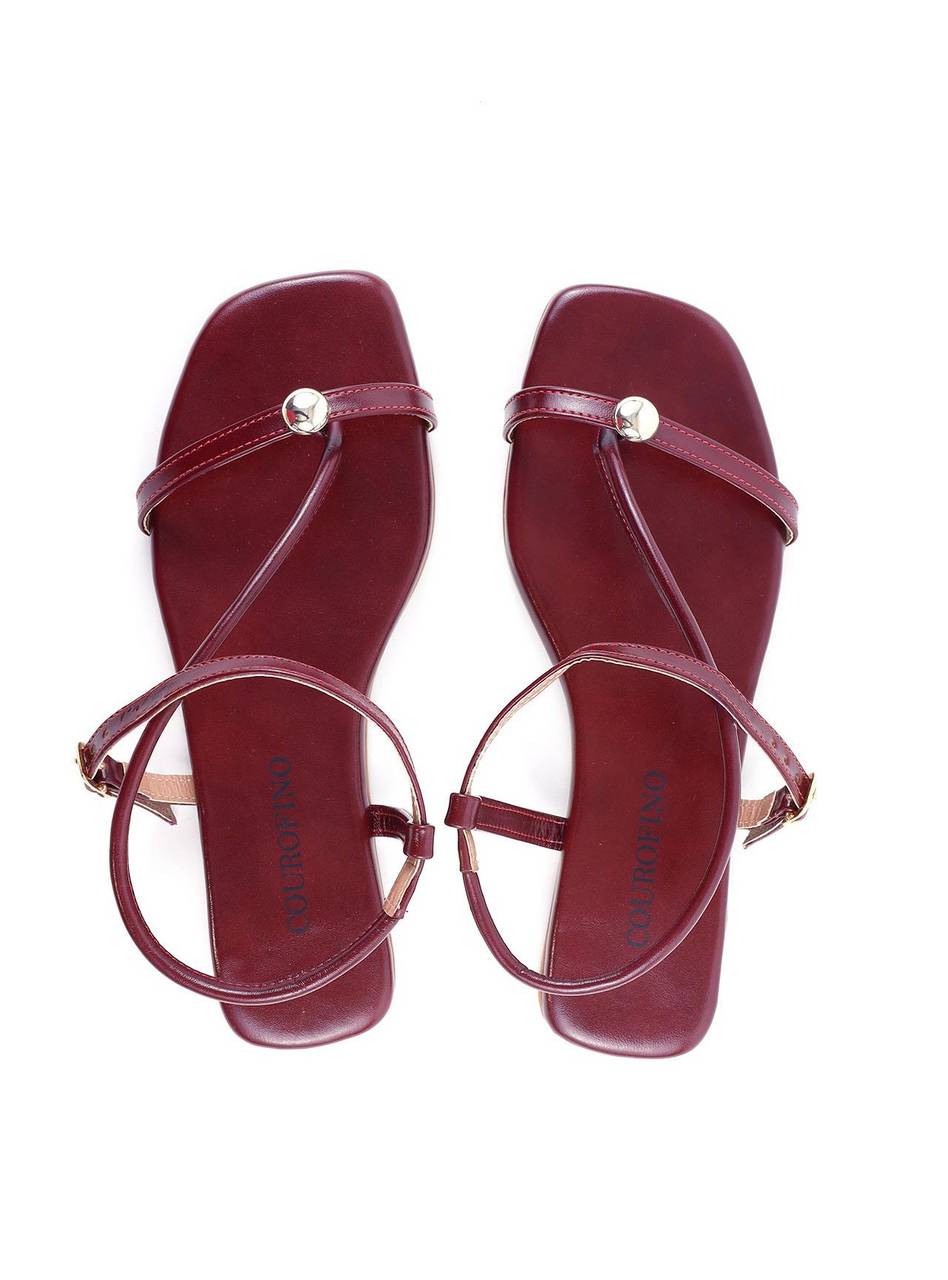 Rasteira com Tira Lateral e Esferas - Vinho SDI-11854 - VI