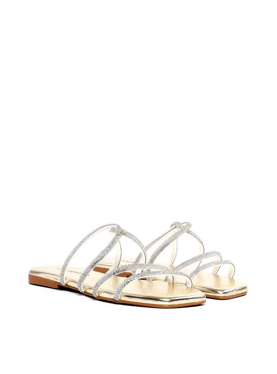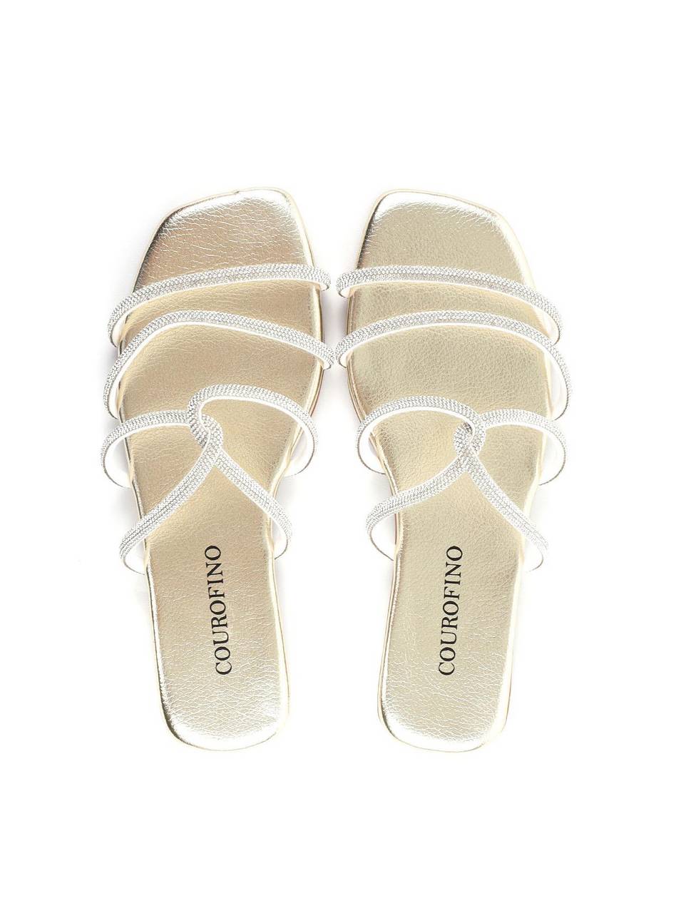 Rasteira com Tiras Cruzadas e Strass - Ouro SDI-11891 - AU