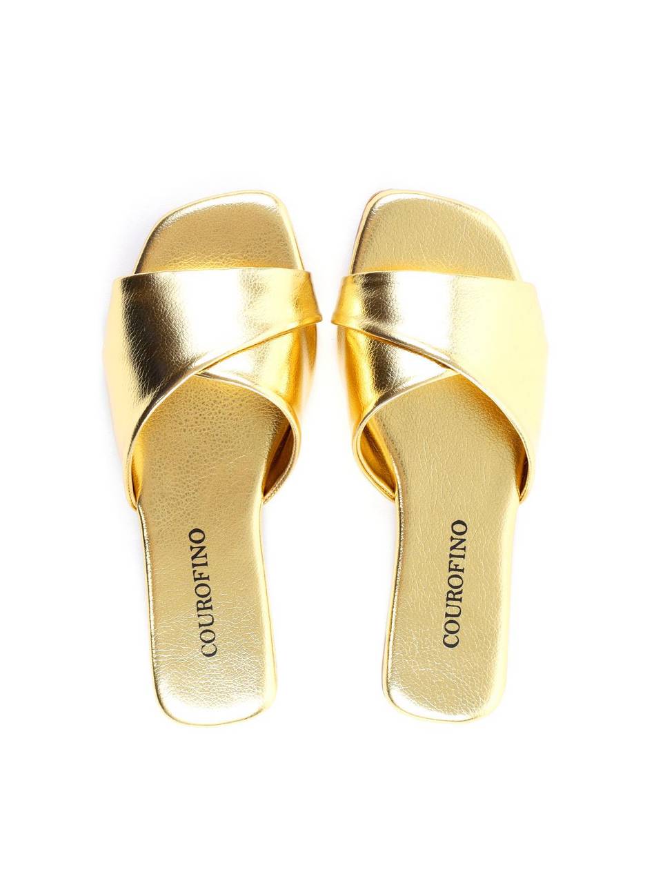 Rasteira com Tiras Largas Entrelaçadas - Ouro SDI-11926 - AU