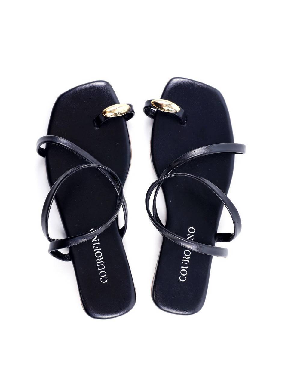 Rasteira com Tiras Laterais e Dedeira - Preta SDI-11844 - PR