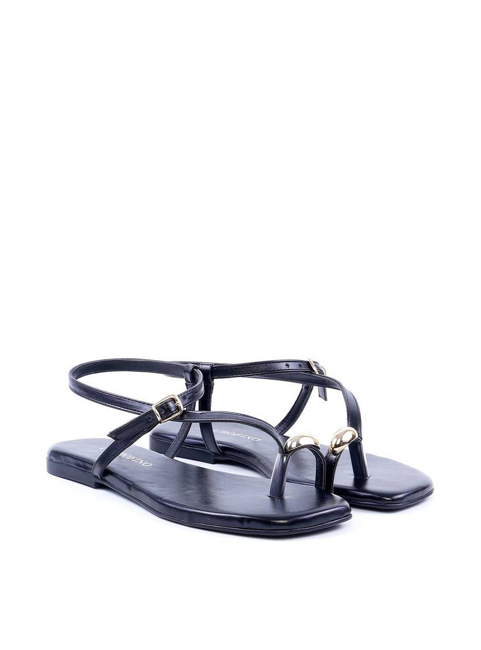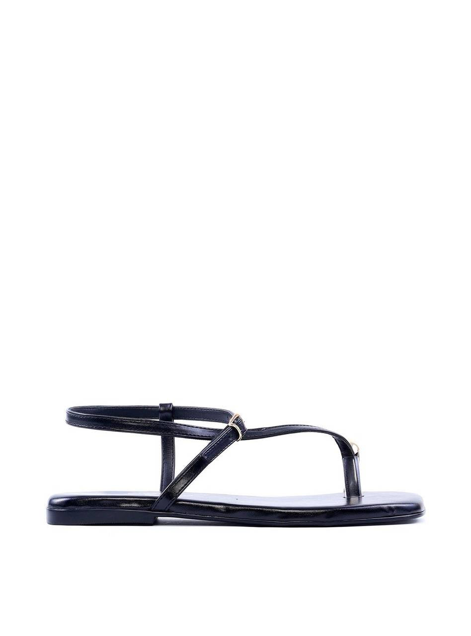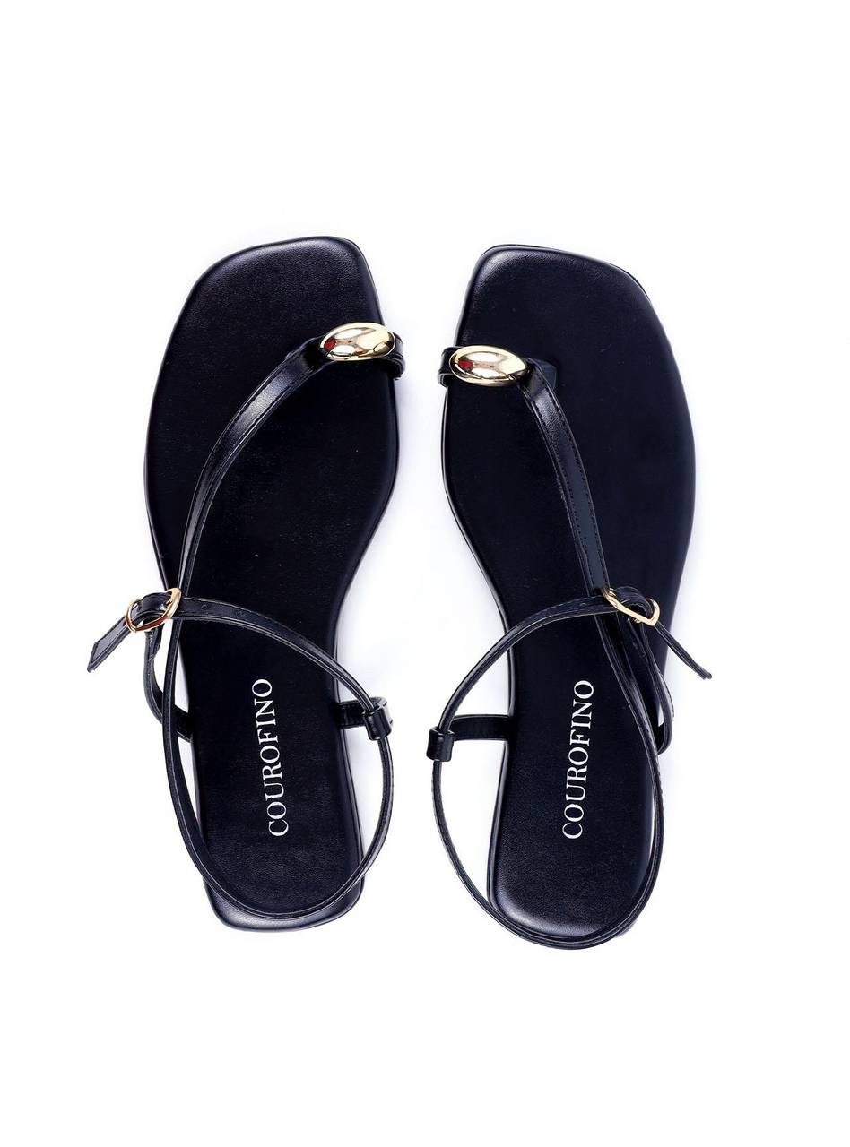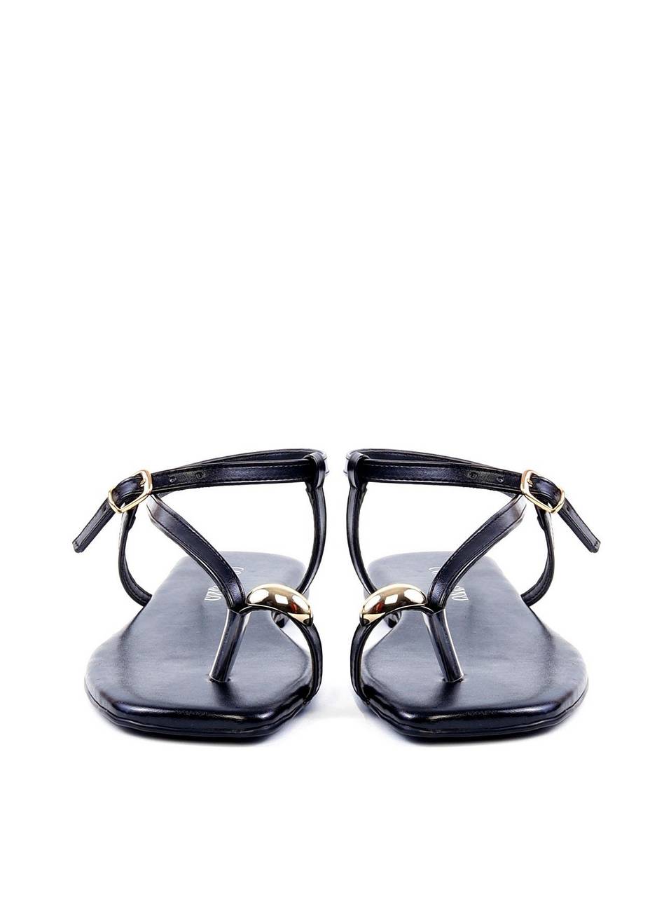 Rasteira de Dedo com Detalhe Ouro e Tiras Finas - Preta SDI-11780 - PR
