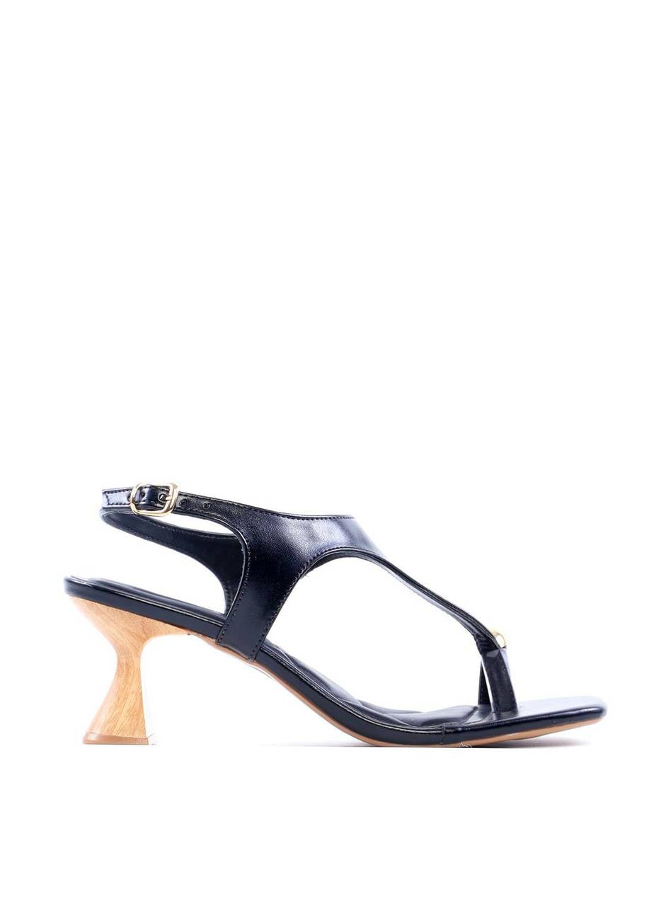 Sandália de Dedo com Salto Taça e Enfeito Orgâncico - Preta SDI-11762 - PR