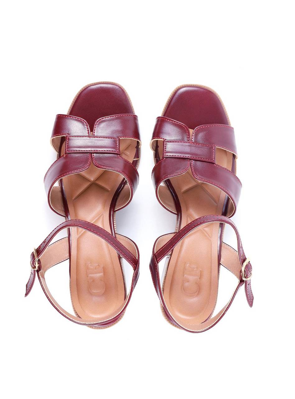 Sandália Salto Bloco Costura em H - Vinho SDI-11779 - VI