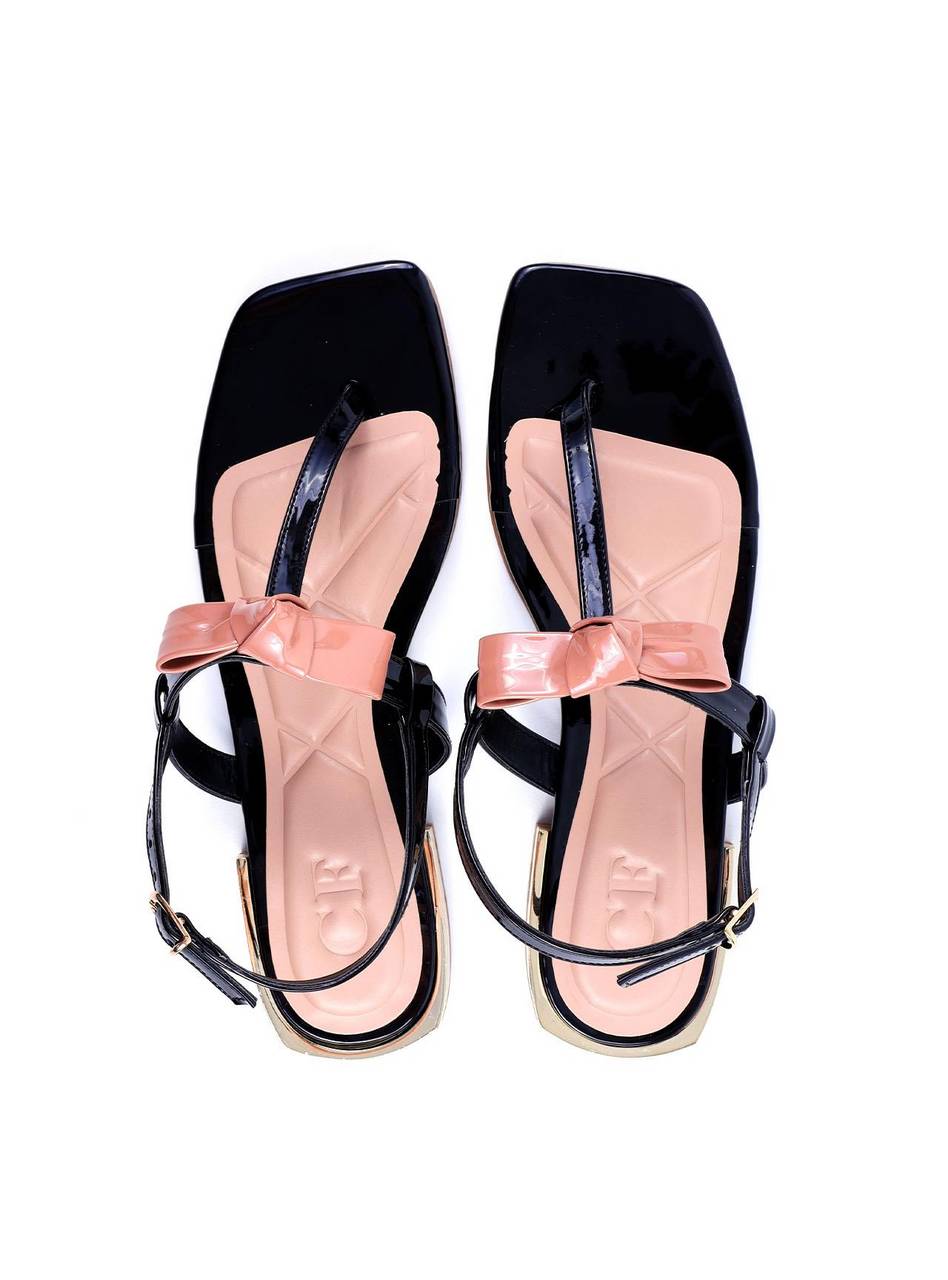 Sandália Salto Quadrado Tiras com Laço - Preta SDI-11747 - PR