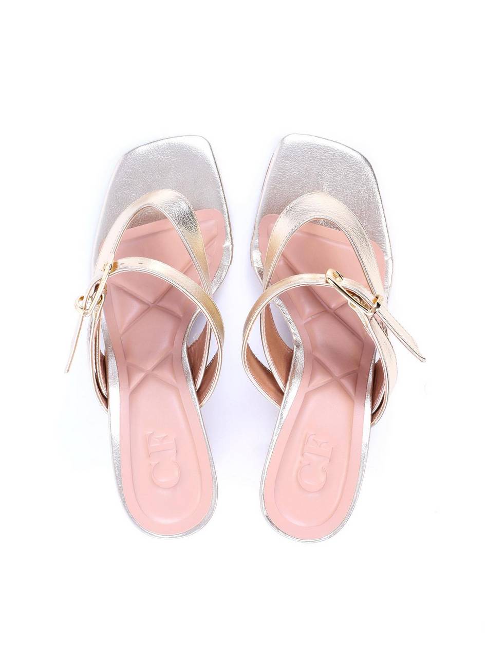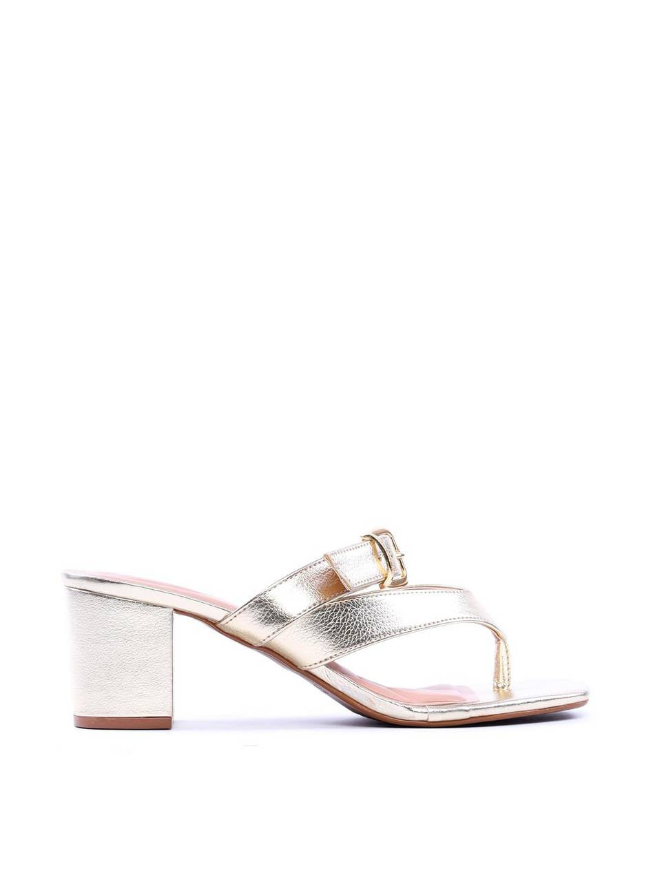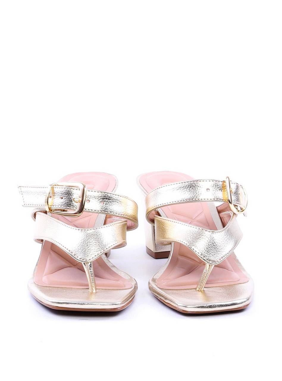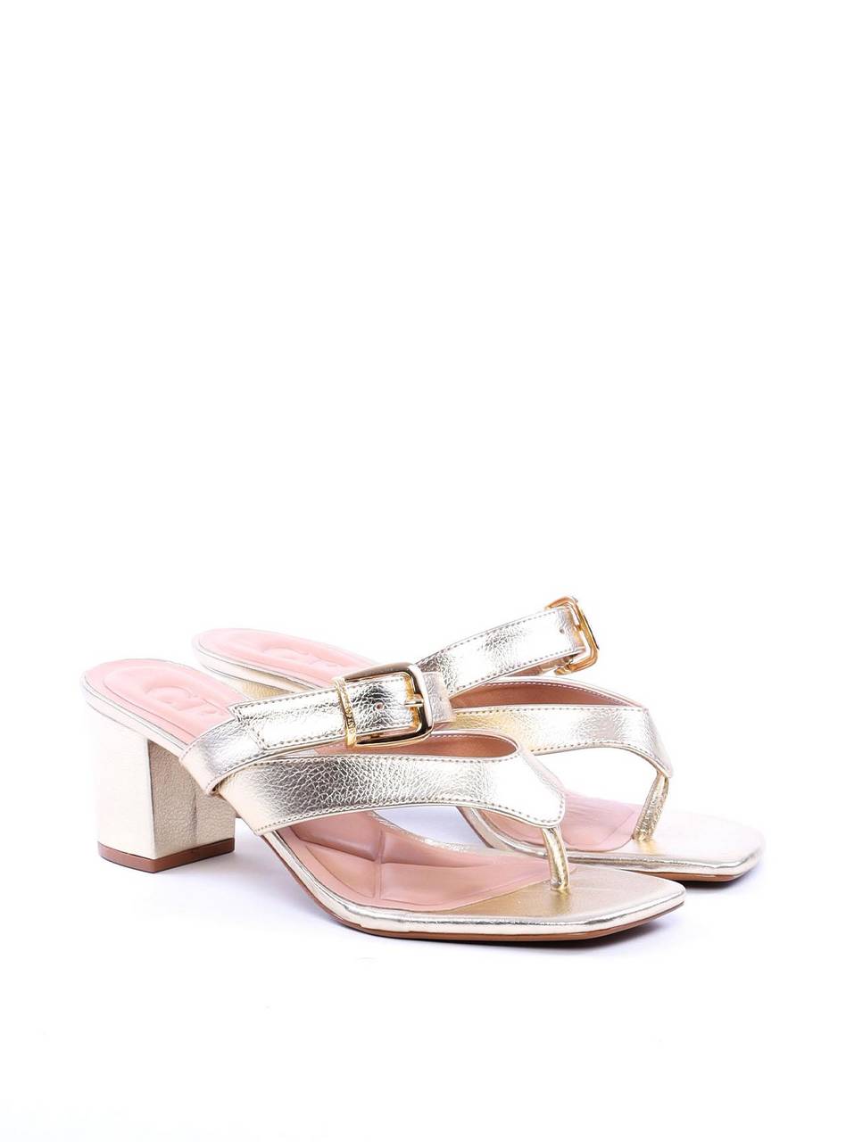 Sandália Tamanco Salto Bloco com Tiras e Fivela - Ouro SDI-11697 - AU