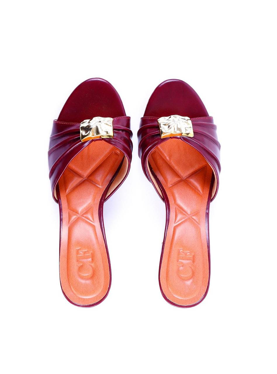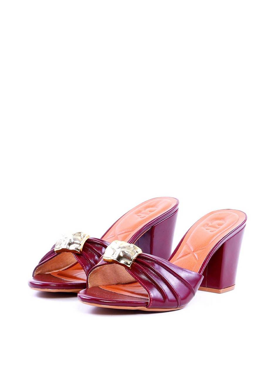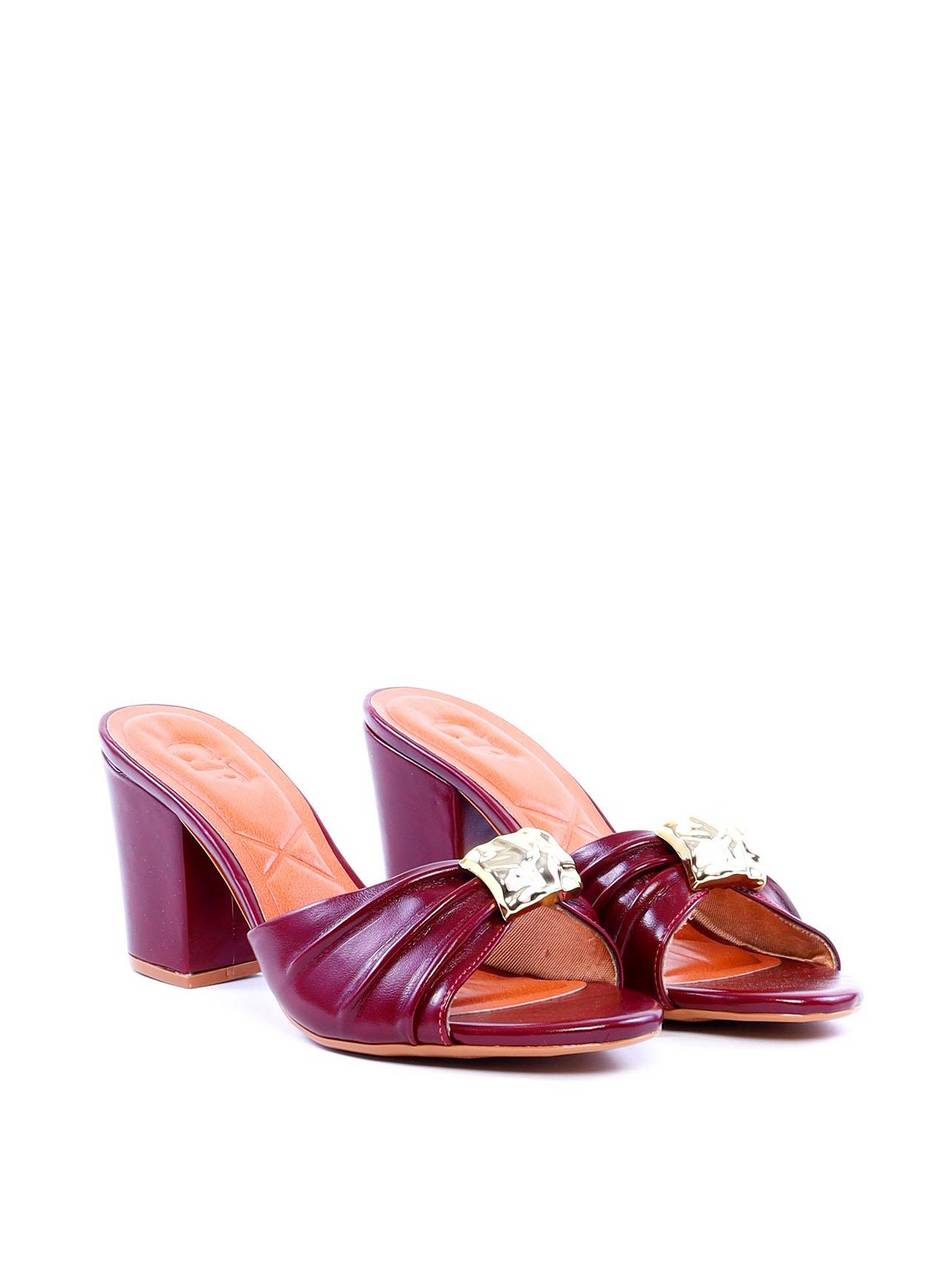 Tamanco Salto Bloco Drapeado Enfeite Orgânico - Vinho SDI-11984 - VI