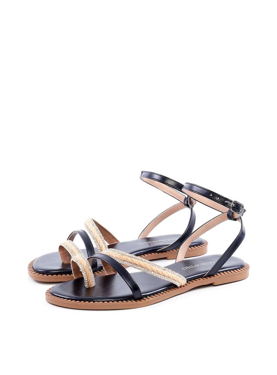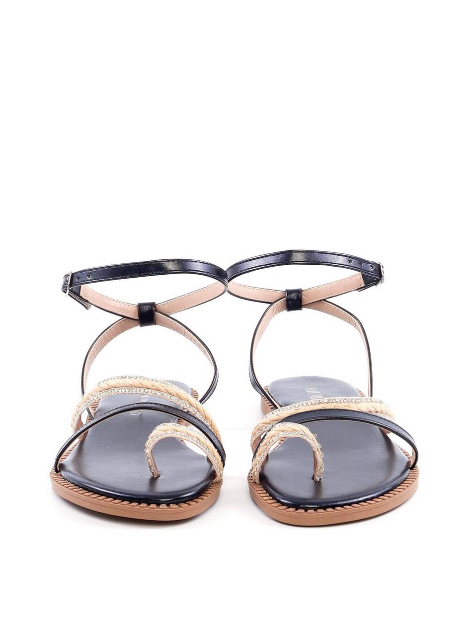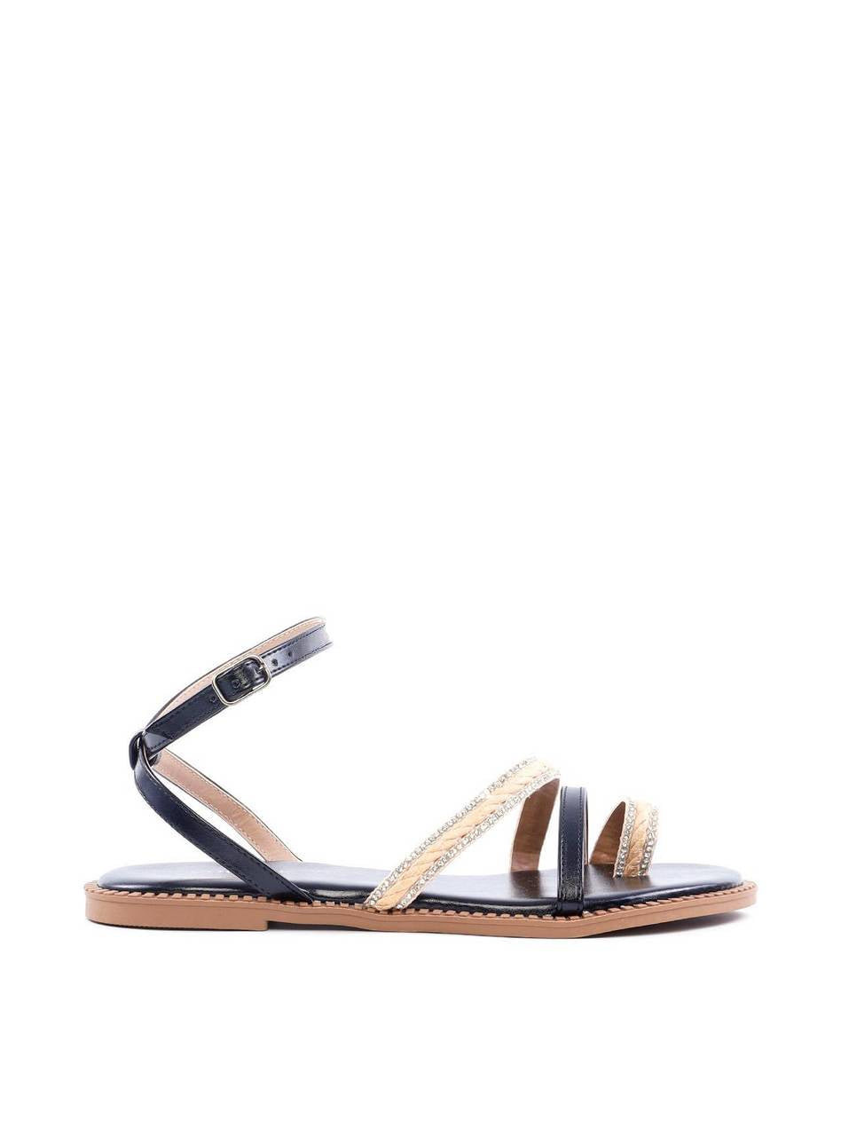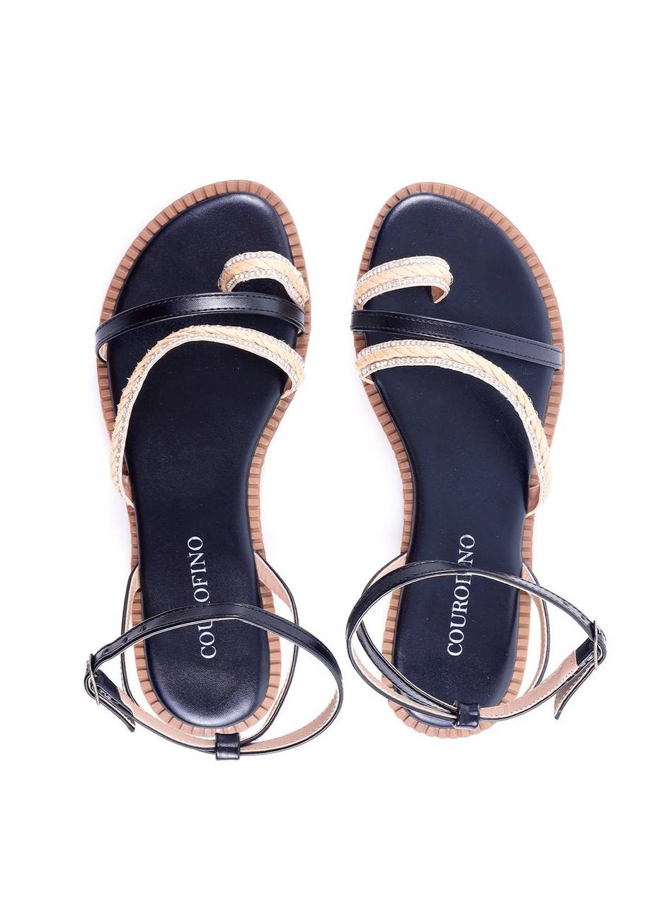 Rasteira com Traseira e Tiras de Strass - Preta SDI-11778 - PR