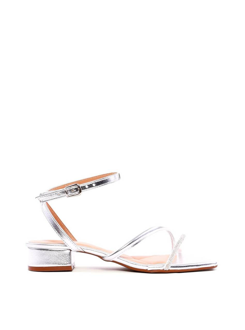 Sandália Salto Bloco com Tira Lateral e Strass - Prata SDI-11919 - PT