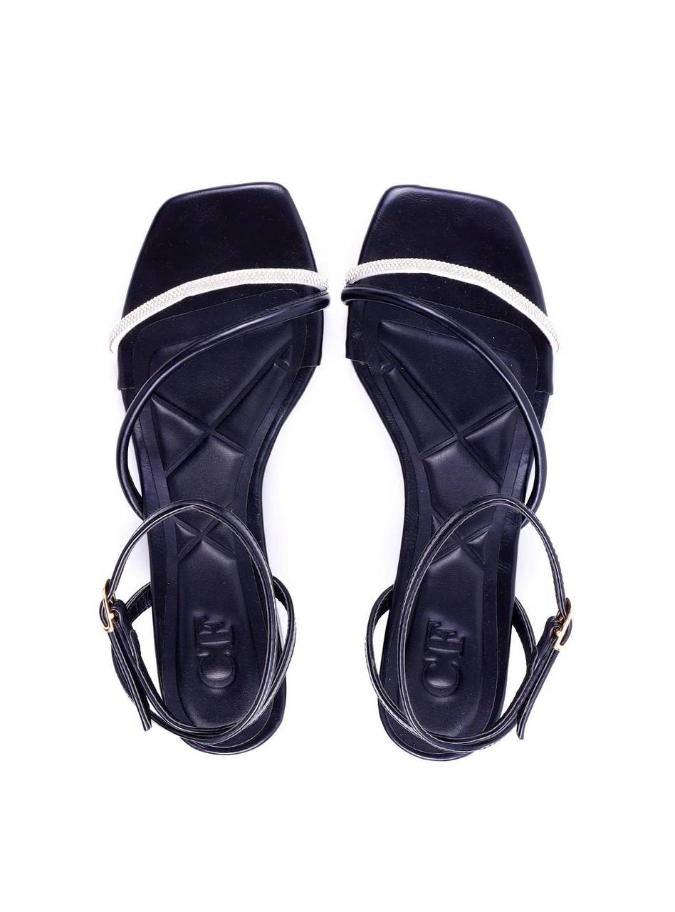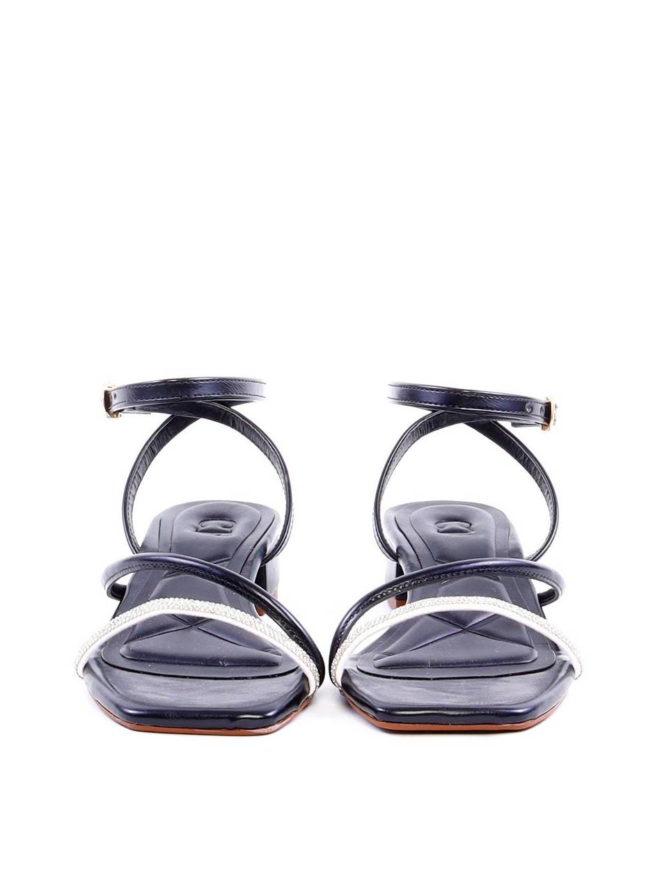 Sandália Salto Bloco com Tira Lateral e Strass - Preta SDI-11919 - PR