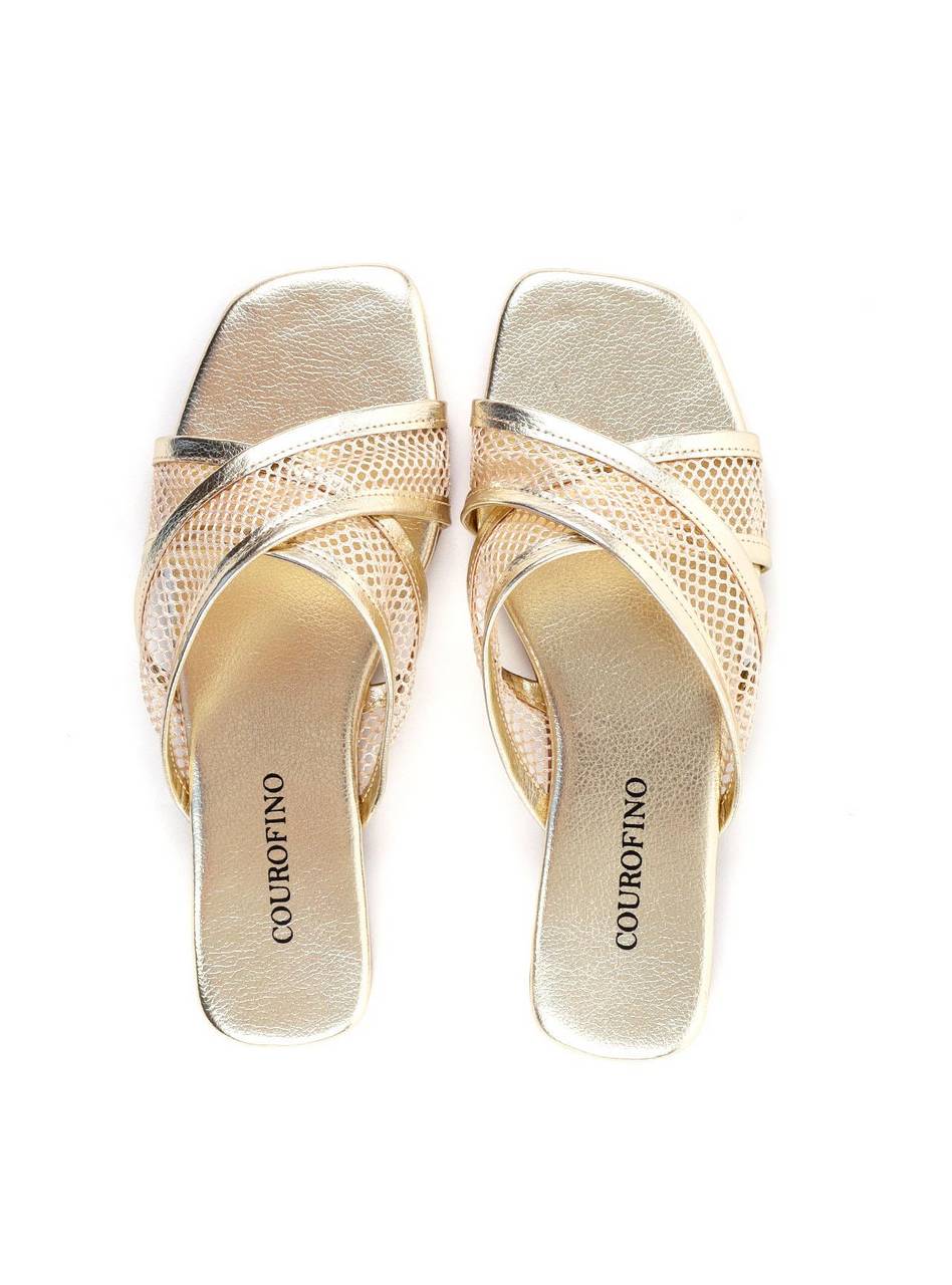 Rasteira com Tiras Cruzada e Tela - Ouro SDI-11963 - AU