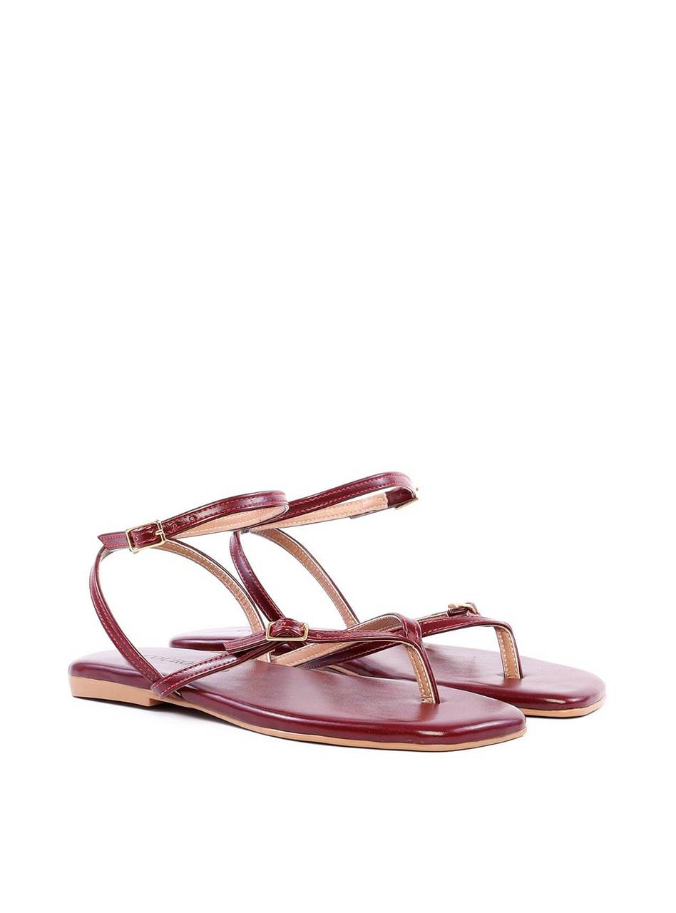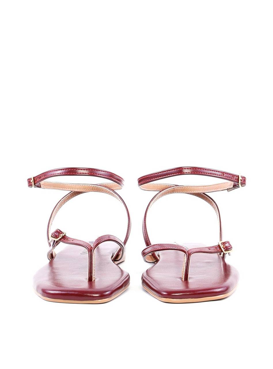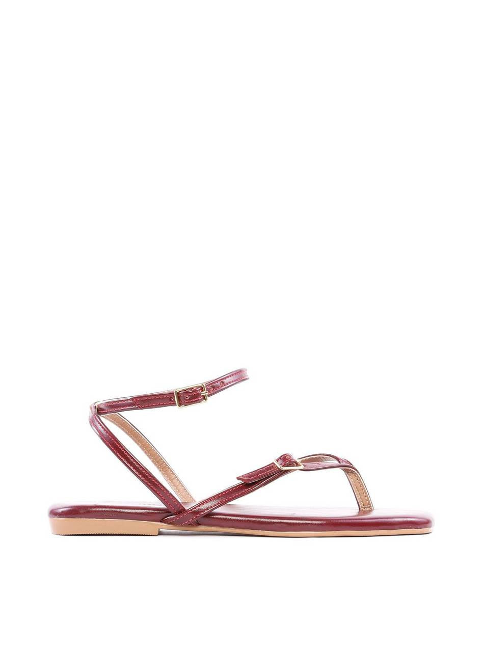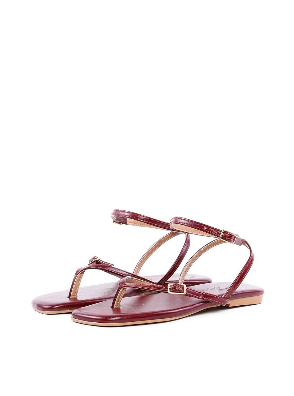 Rasteira de Dedo com Tiras Finas e Fivelas - Vinho SDI-11871 - VI