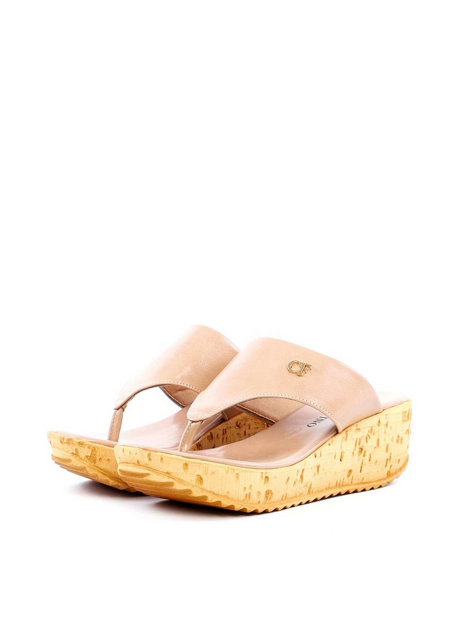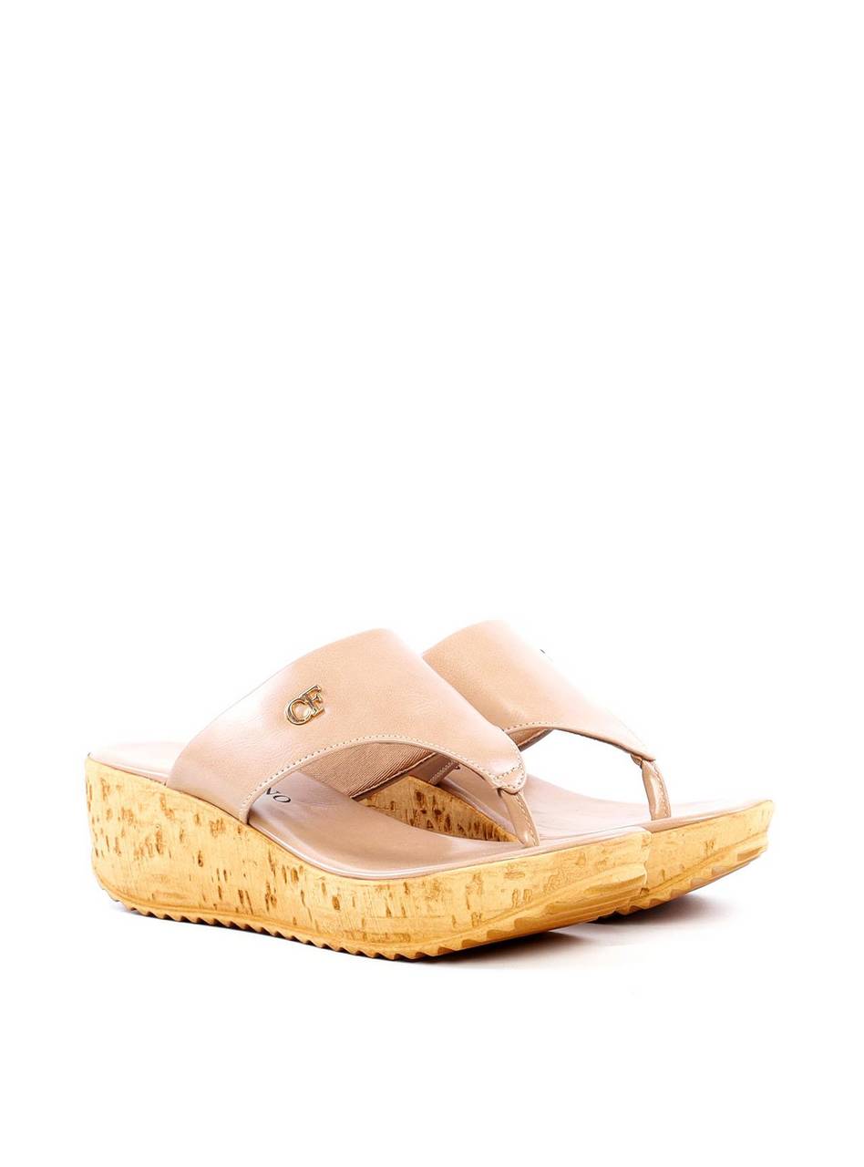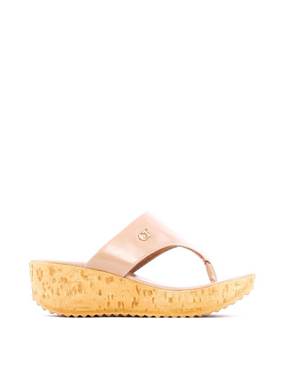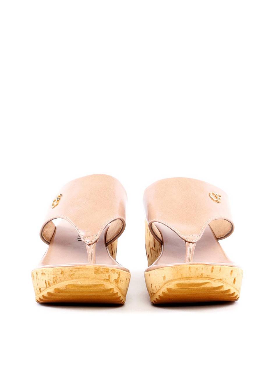 Tamanco com Salto de Cortiça e Tira Larga - Nude SDI-11877 - NU